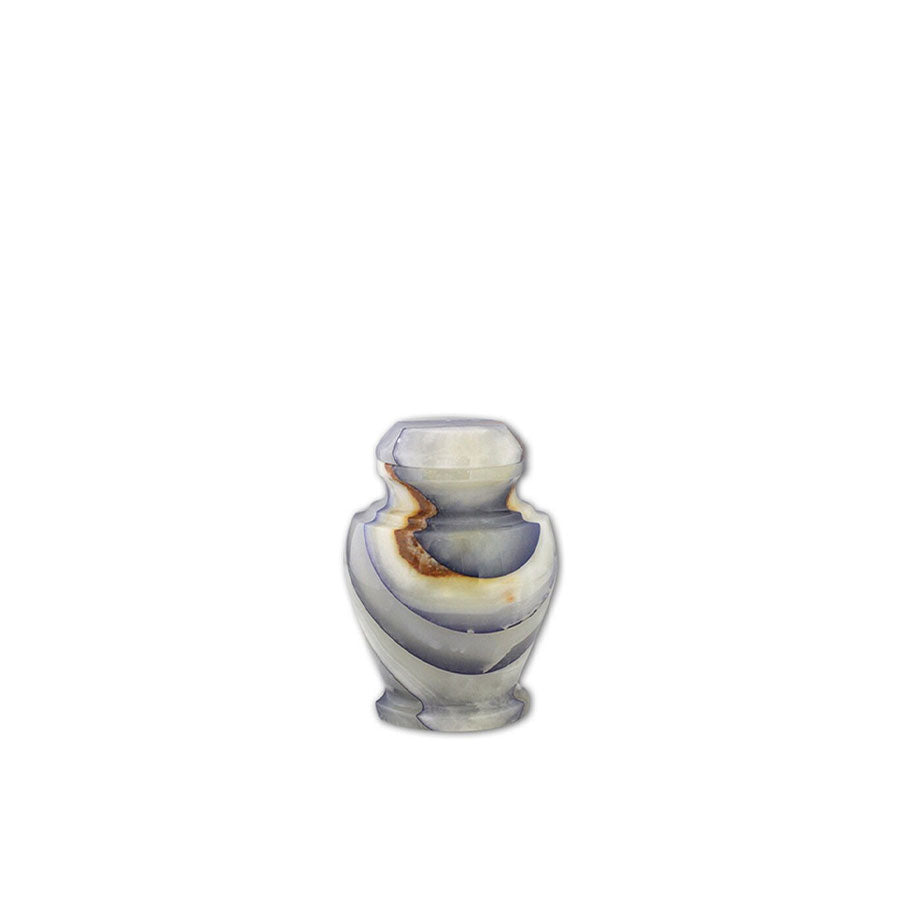 Expertly crafted and made of beautiful marble, the Carpel - Blue Onyx is the perfect keepsake to hold a portion of your loved one's cremains. With its elegant mix of blue, white, and brown, this urn is a timeless tribute to their memory. Honor their life with a lasting resting place.