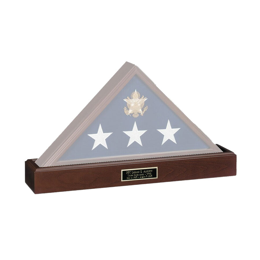 This cremation urn can serve as a pedestal for a flag case, and comes with the option for an engraving plate. Honor your loved one and their service with this elegant and functional piece.