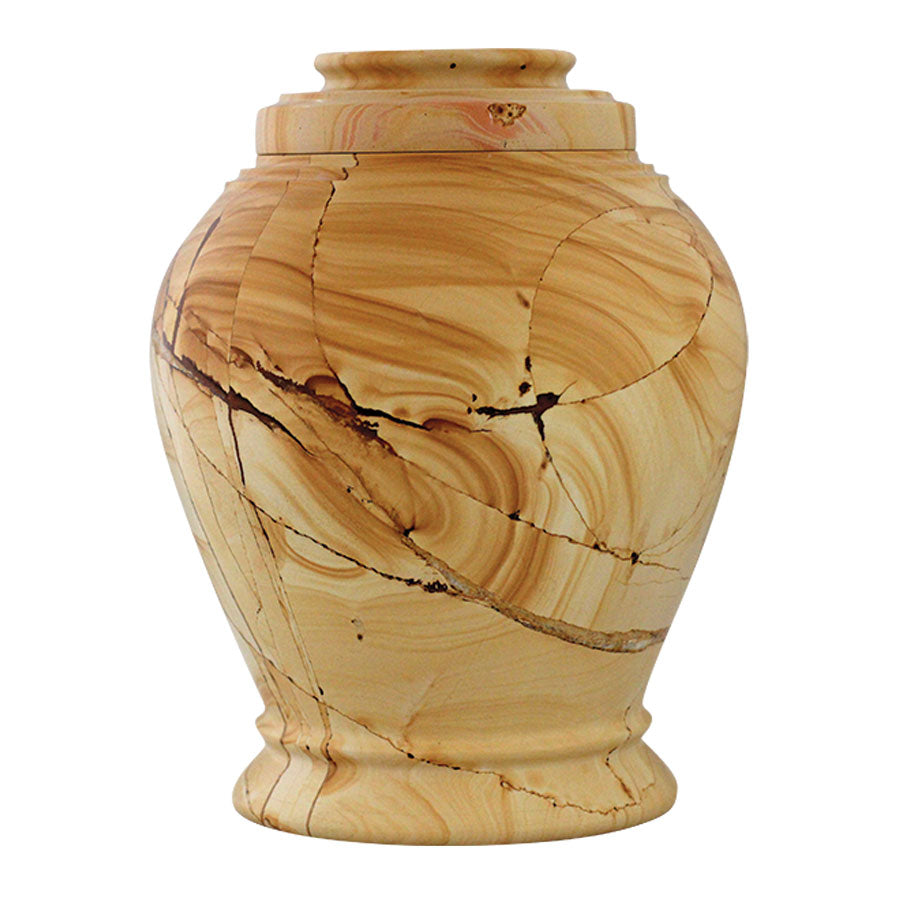Introducing The Love - Teak, a stunning marble urn in light brown and cream. This elegant piece is crafted with high quality teak wood, providing a durable yet beautiful resting place for your loved one's ashes.