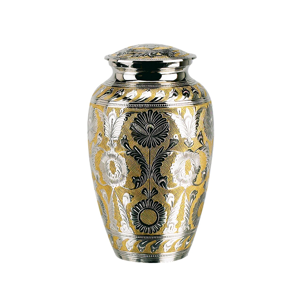 Crafted with genuine brass, The Nobel Brass is a premium cremation urn adorned with gold and silver finishes. Its elegant design not only honors your loved one's life, but also provides a dignified resting place for their remains.